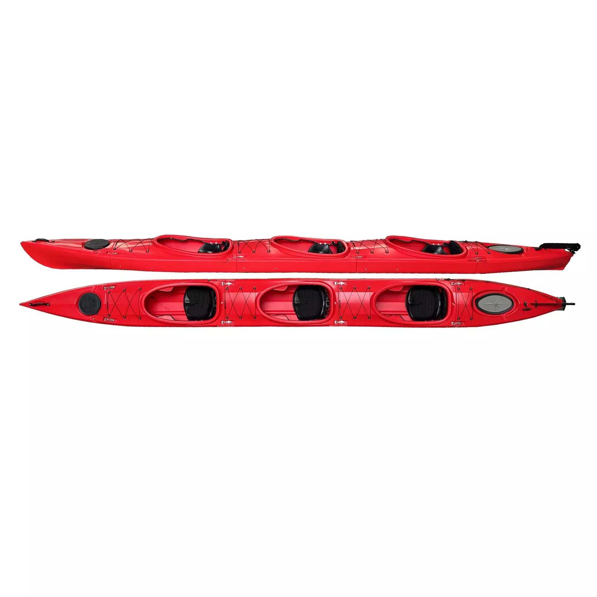 Bonuksena kolmikosta on helppo koota myös kaksikko tai yksikkö jättämällä yksi tai kaksi ohjaamomodulia pois. Freedom V Triple tarjoaakin samassa paketissa sekä kolmikko-, kaksikko- että soolokajakin!