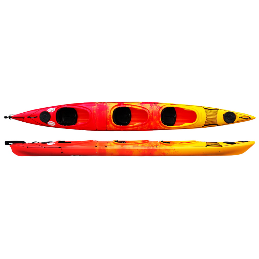 H&S Weekender III 580 on edullinen, polyeteenimuovista valmistettu, peräsimellä varustettu linjakas kajakkikolmikko. Weekender III 580 sopii hyvin esim. 1-2 päivän perheretkille kolmen istuinaukkonsa ansiosta, keskiaukon penkin ja selkänojan ansiosta siinä voi tarvittaessa kuljettaa esim. lasta tai lemmikkiä.. Keskimmäistä aukkoa voi halutessaan käyttää pidemmillä retkillä myös kookkaana pakkaustilana. Varustukseen kuuluvat pyöreillä luukuilla varustetut pakkaustilat edessä ja takana, kansiverkko edessä sekä peräsin. Eri värejä, kysy!