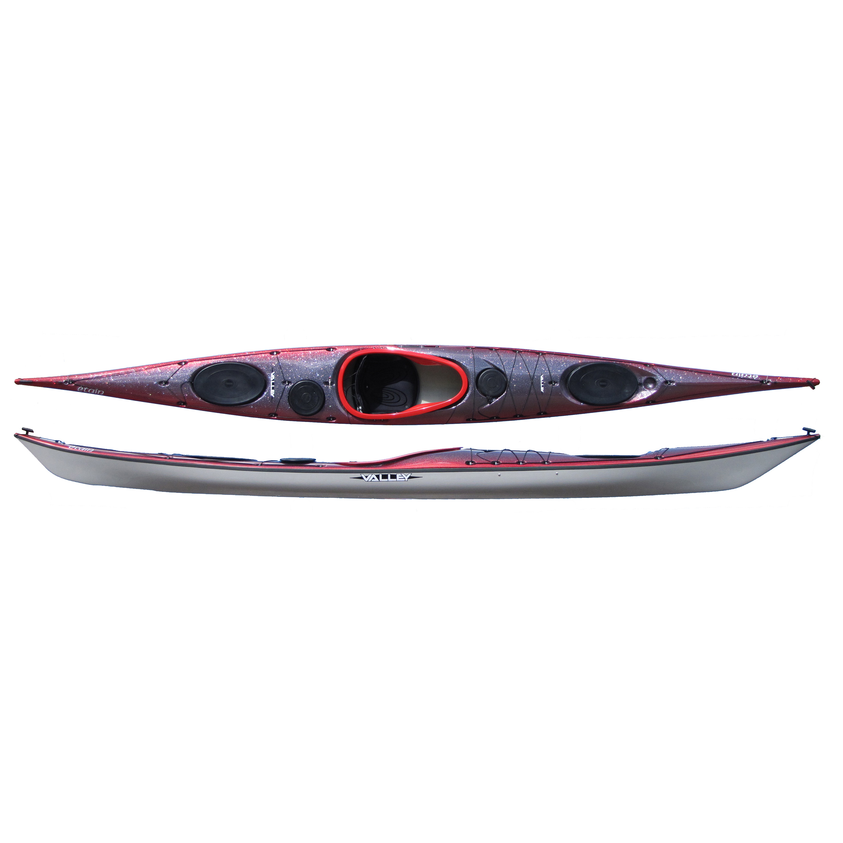 Valley Etain on valmistajansa lippulaivamalli. Etain on neutraali ja helppo melottava meriretkikajakki vaativiinkiin olosuhteisiin. Kajakin runko on lievästi swedeform-muotoiltu; kajakin levein kohta löytyy istuinaukon takana. Pohjan V-muoto antaa kajakille vakautta, pitkä vesilinja tuo nopeutta. Etukannella päiväluukku pikkutavaroita varten, isot etu- ja takapakkaustilat ovaaliluukuilla, päiväluukku takana, nostoevä.